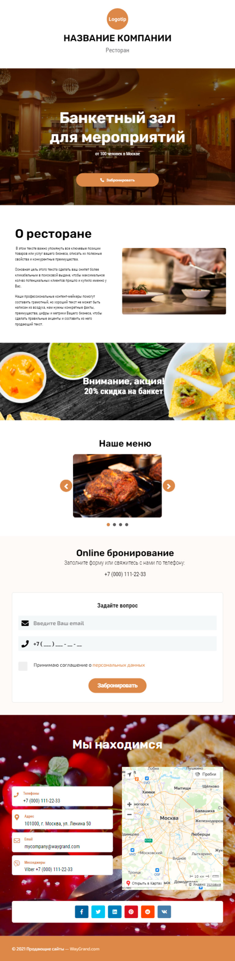 Закажите готовый продающий сайт визитка #0449101 в Южно-Сахалинске за 5-7 дня «под ключ»: свёрстан, отрисован и готов к рекламе. Тематика шаблона «Банкетный зал для мероприятий».