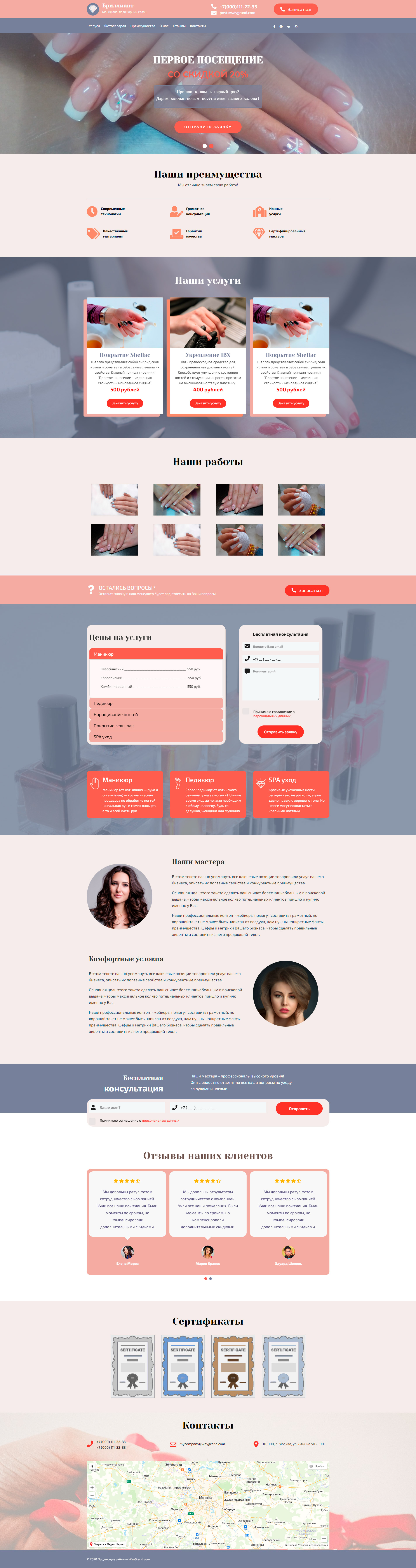 Закажите готовый продающий сайт лендинг #1107201 в Южно-Сахалинске за 1-3 дня «под ключ»: свёрстан, отрисован и готов к рекламе. Тематика шаблона «Салон маникюра и педикюра».