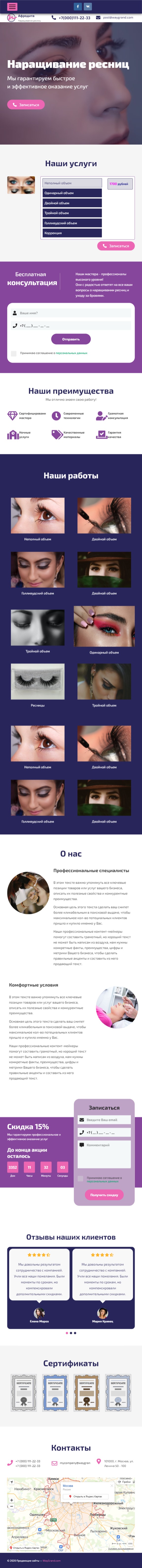 Закажите готовый продающий сайт лендинг #1117201 в Южно-Сахалинске за 1-3 дня «под ключ»: свёрстан, отрисован и готов к рекламе. Тематика шаблона «Наращивание ресниц».