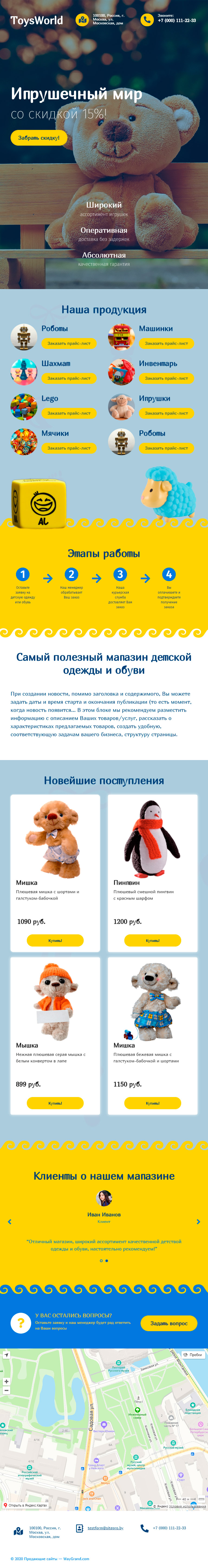 Закажите готовый продающий сайт лендинг #1509201 в Южно-Сахалинске за 1-3 дня «под ключ»: свёрстан, отрисован и готов к рекламе. Тематика шаблона «Игрушечный мир».