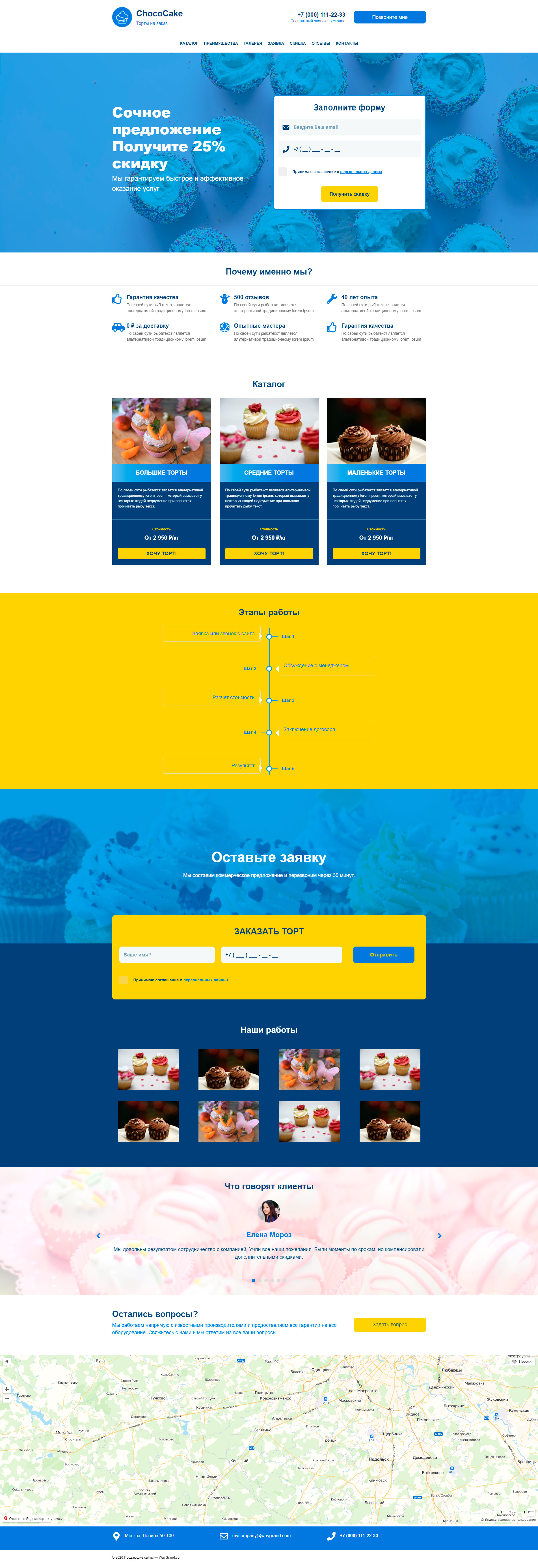 Закажите готовый продающий сайт лендинг #1711205 в Южно-Сахалинске за 1-3 дня «под ключ»: свёрстан, отрисован и готов к рекламе. Тематика шаблона «Торты на заказ».