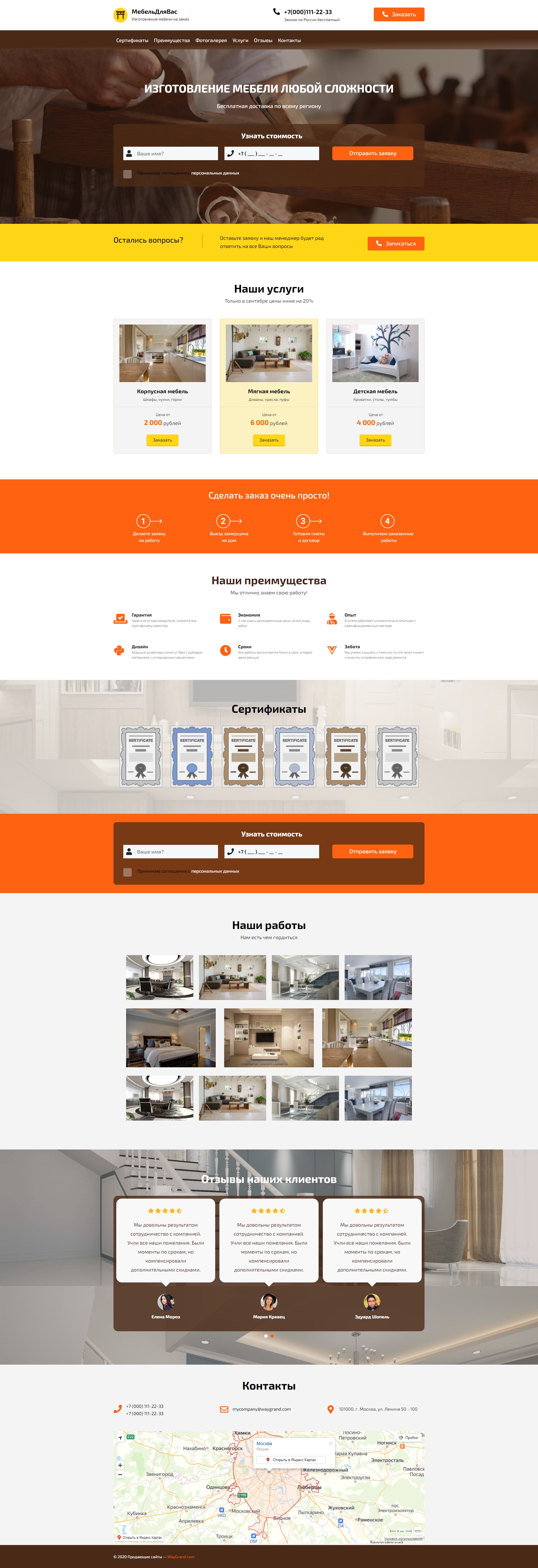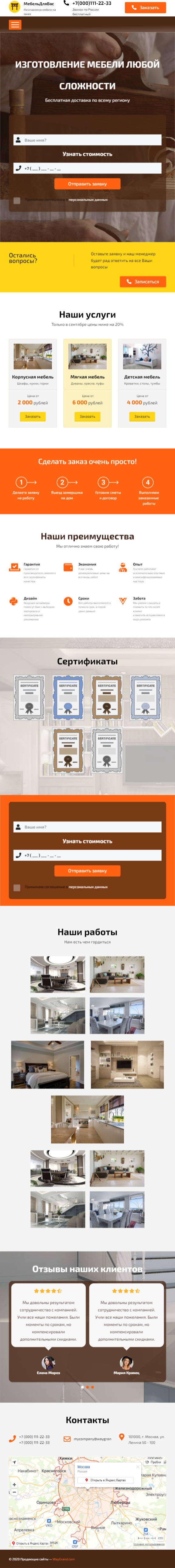 Закажите готовый продающий сайт лендинг #0903201 в Южно-Сахалинске за 1-3 дня «под ключ»: свёрстан, отрисован и готов к рекламе. Тематика шаблона «Изготовление мебели».