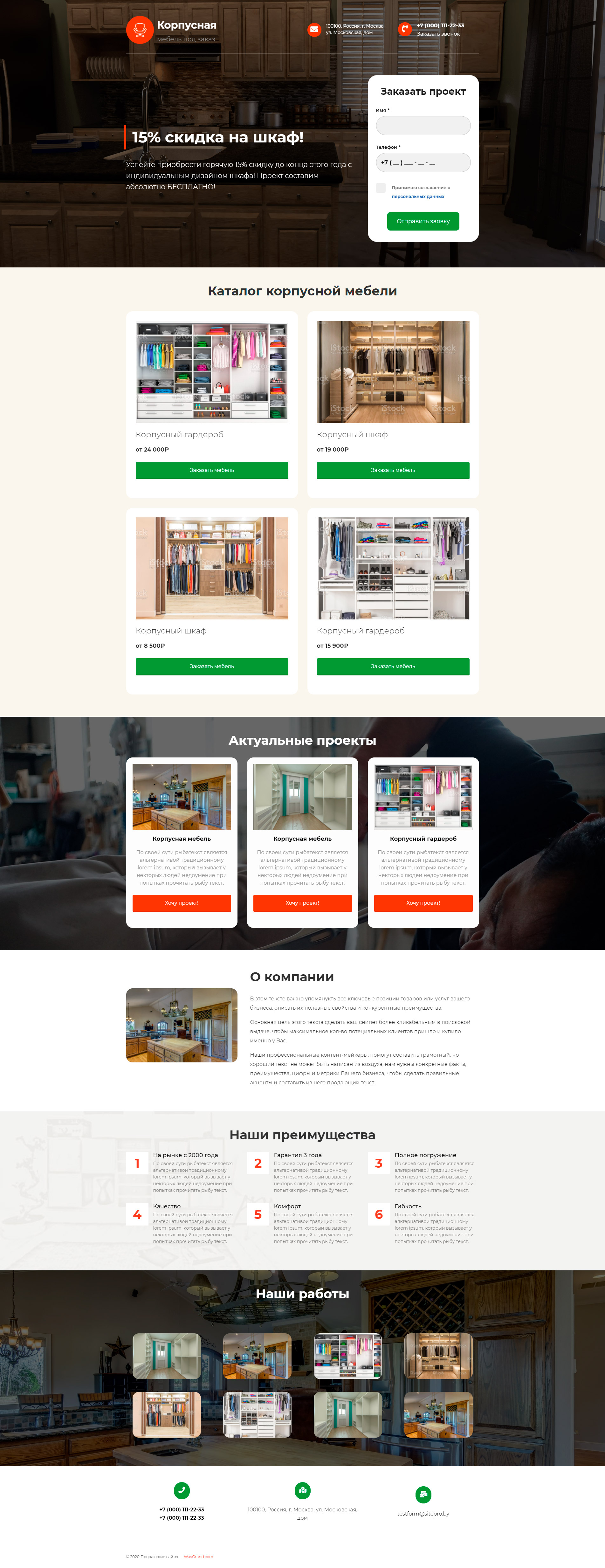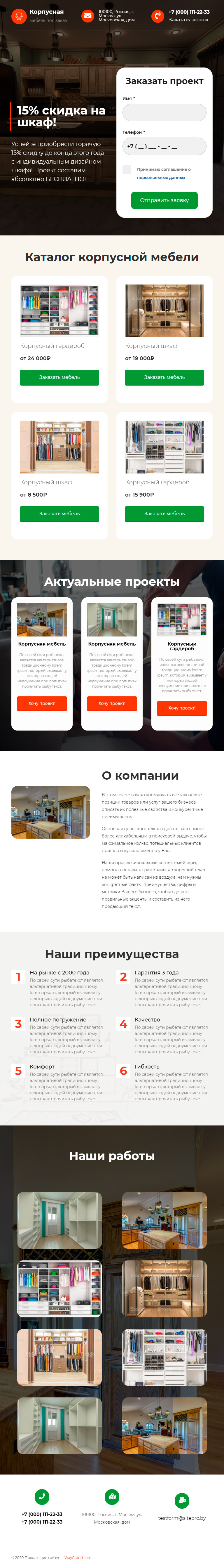 Закажите готовый продающий сайт лендинг #0915204 в Южно-Сахалинске за 1-3 дня «под ключ»: свёрстан, отрисован и готов к рекламе. Тематика шаблона «Корпусная мебель».