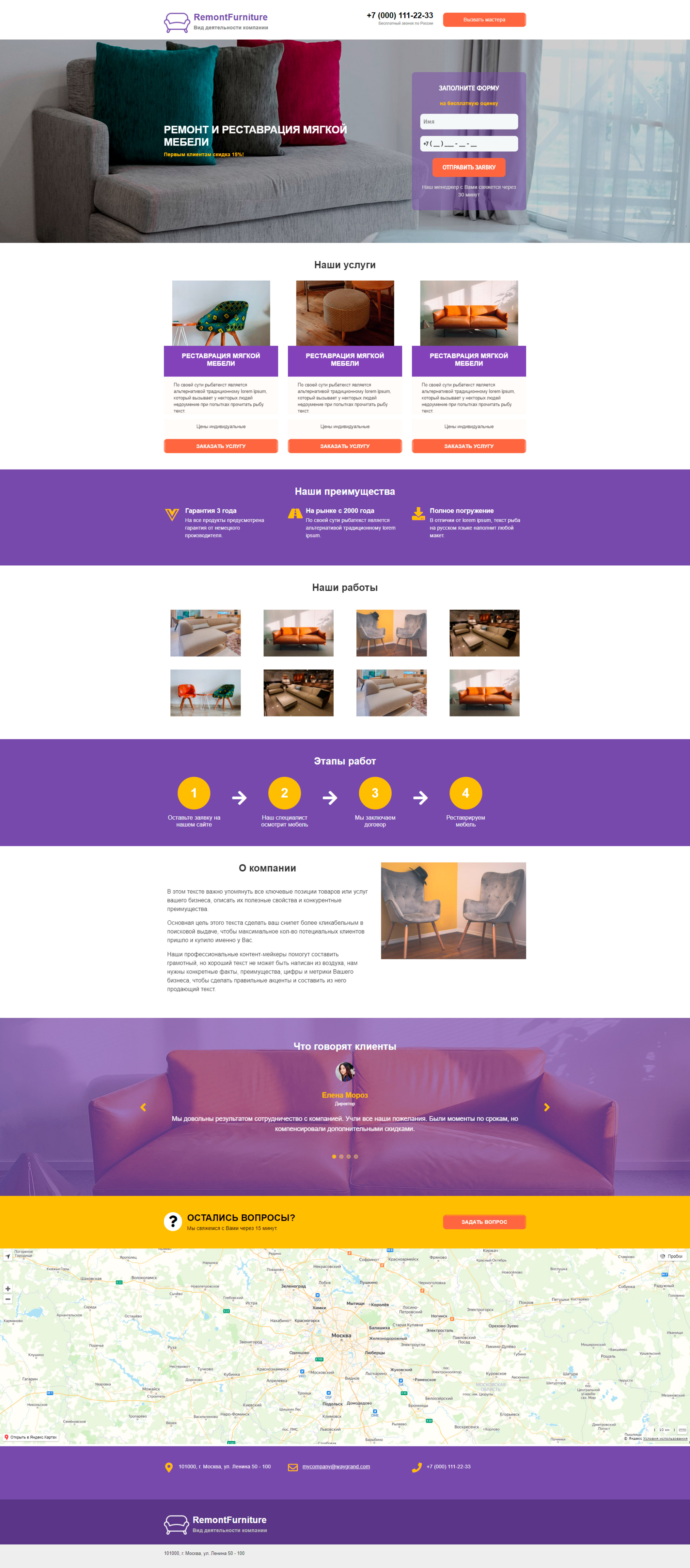 Закажите готовый продающий сайт лендинг #0924201 в Южно-Сахалинске за 1-3 дня «под ключ»: свёрстан, отрисован и готов к рекламе. Тематика шаблона «Ремонт и реставрация мебели».