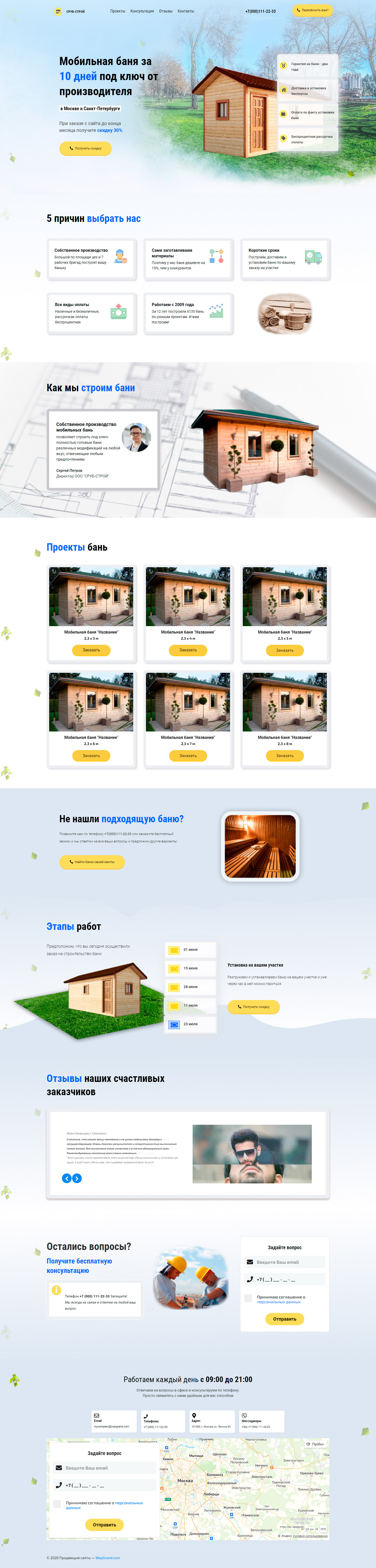 Закажите готовый продающий сайт лендинг #2172203 в Южно-Сахалинске за 1-3 дня «под ключ»: свёрстан, отрисован и готов к рекламе. Тематика шаблона «Мобильная баня».