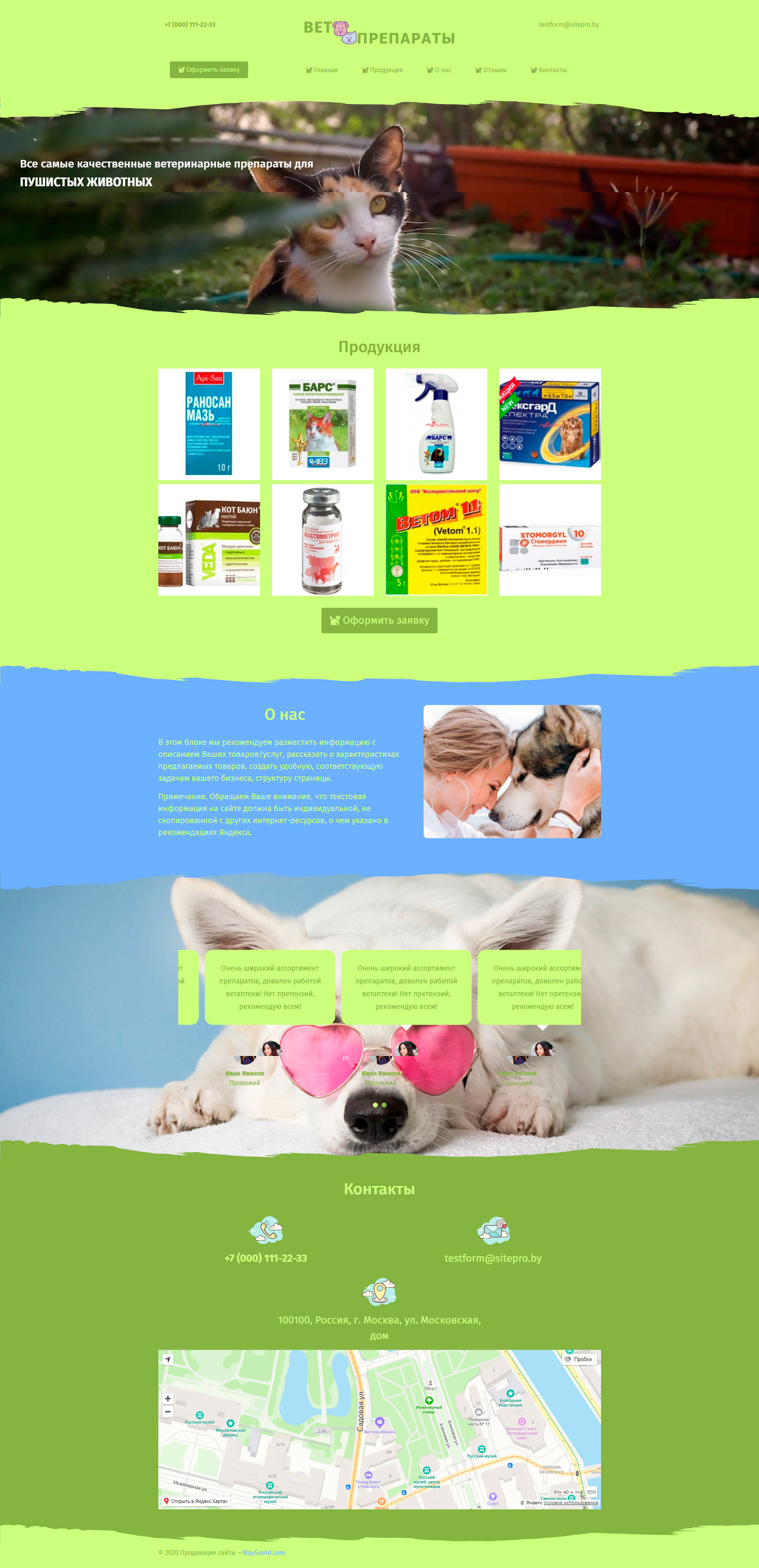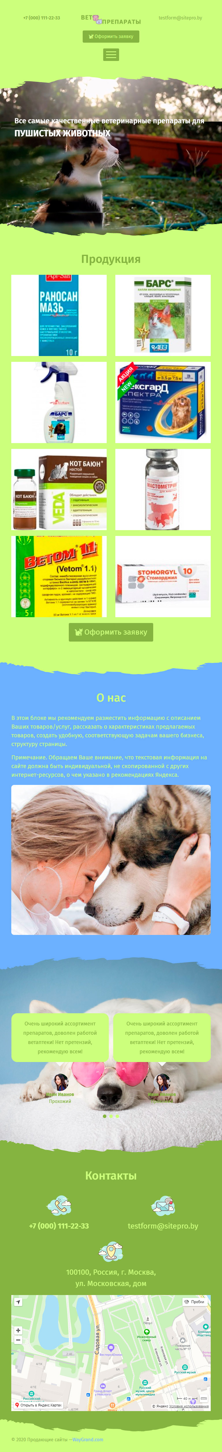 Закажите готовый продающий сайт лендинг #2305202 в Южно-Сахалинске за 1-3 дня «под ключ»: свёрстан, отрисован и готов к рекламе. Тематика шаблона «Ветпрепараты».
