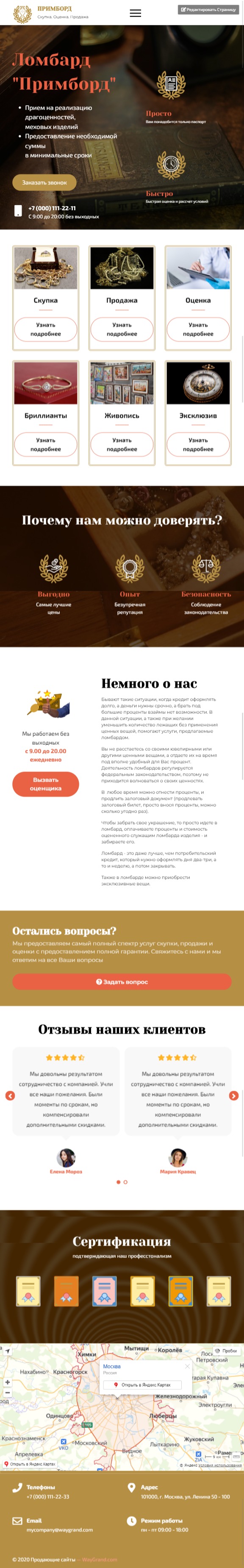 Закажите готовый продающий сайт лендинг #2408201 в Южно-Сахалинске за 1-3 дня «под ключ»: свёрстан, отрисован и готов к рекламе. Тематика шаблона «Ломбард».