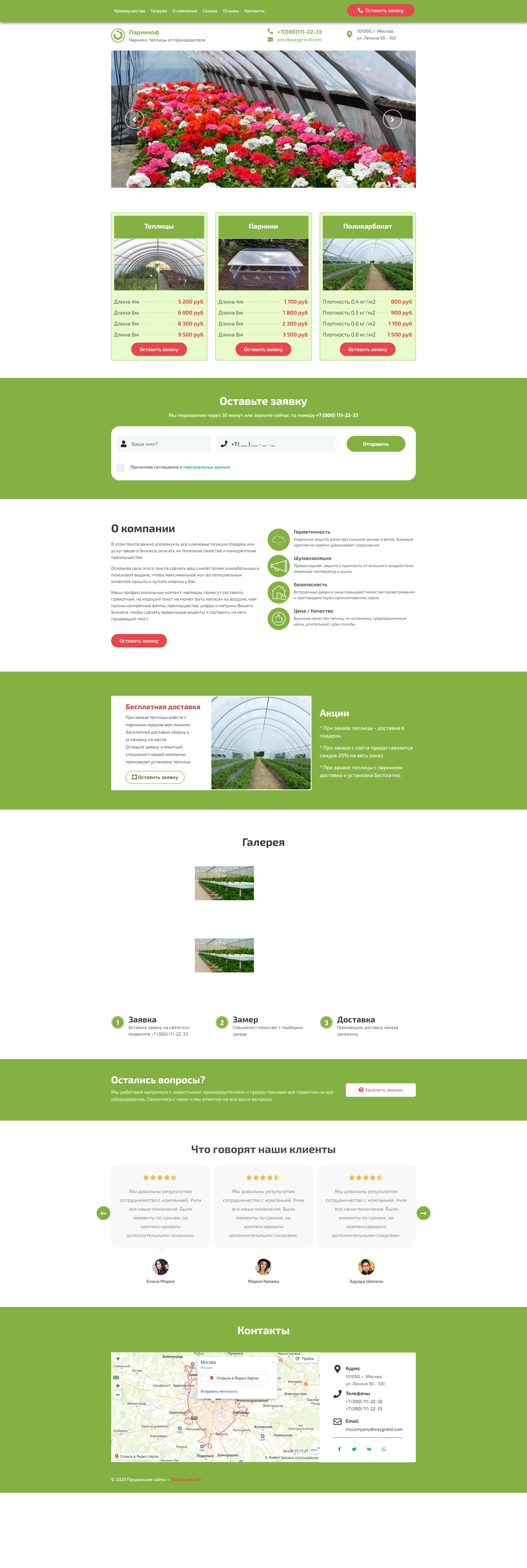 Закажите готовый продающий сайт лендинг #2624202 в Южно-Сахалинске за 1-3 дня «под ключ»: свёрстан, отрисован и готов к рекламе. Тематика шаблона «Парники и теплицы».