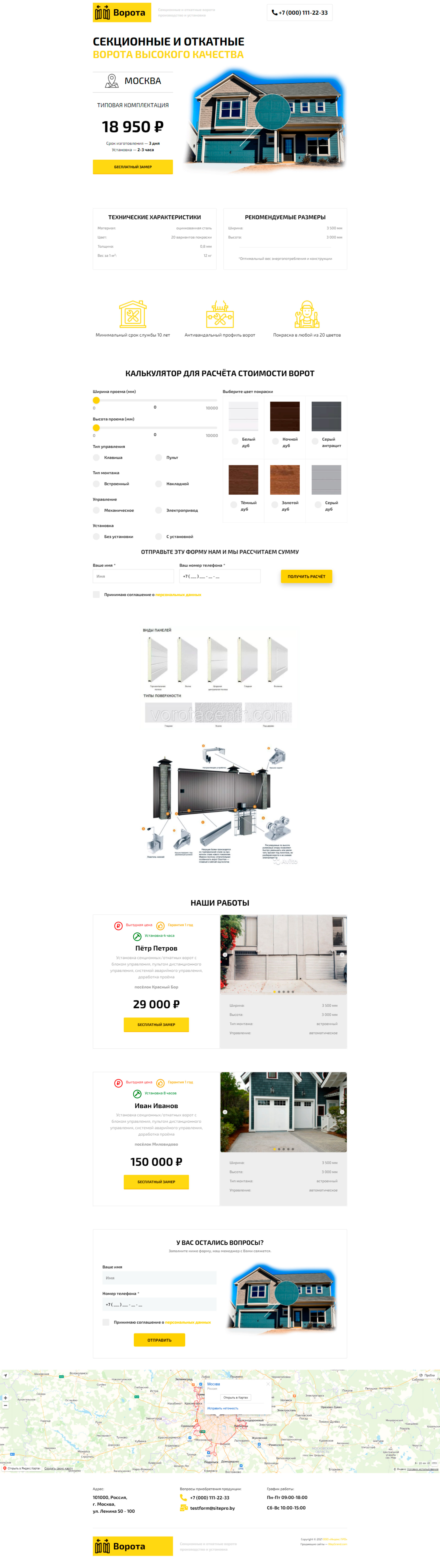 - Форма "Калькулятор для расчёта стоимости ворот"