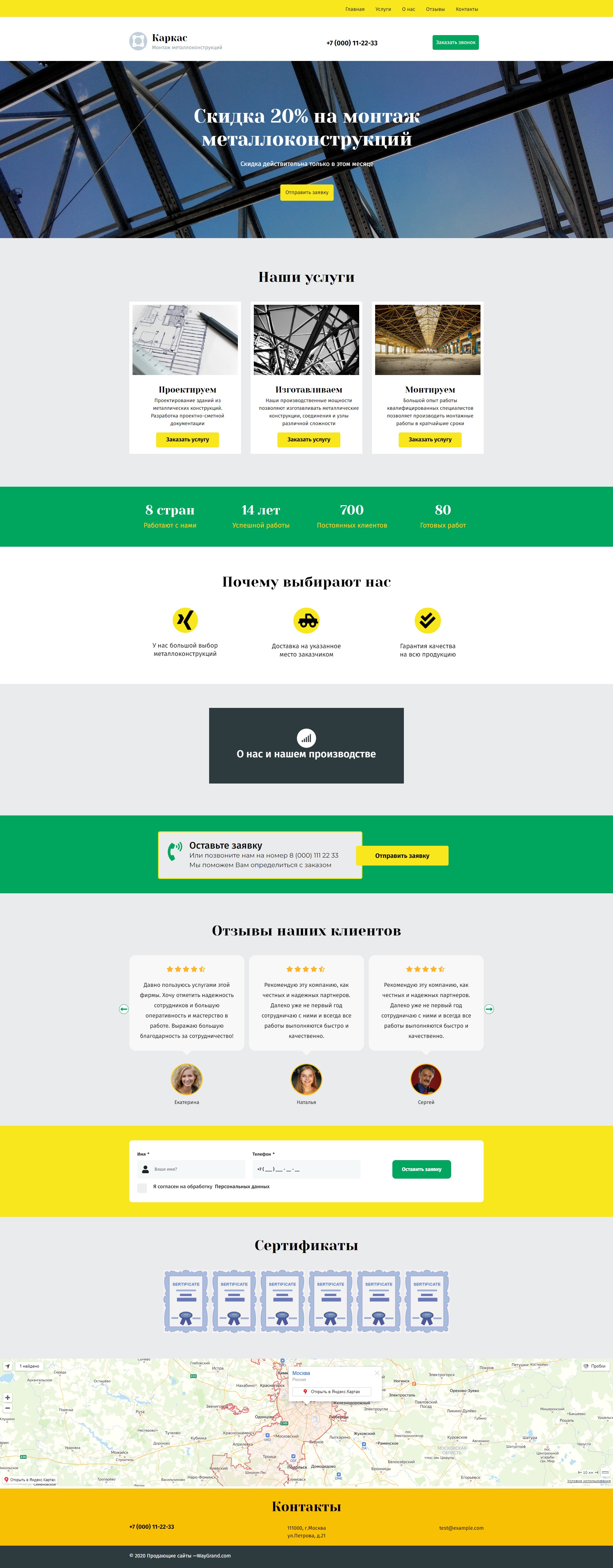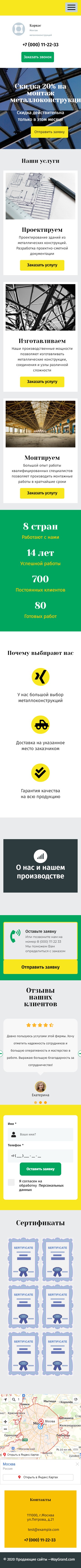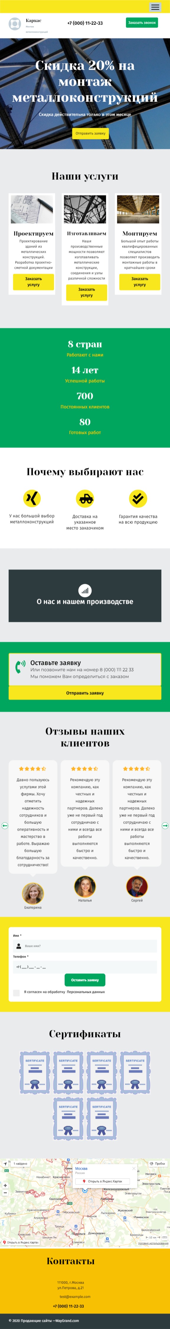 Закажите готовый продающий сайт лендинг #2027201 в Южно-Сахалинске за 1-3 дня «под ключ»: свёрстан, отрисован и готов к рекламе. Тематика шаблона «Металлоконструкции».