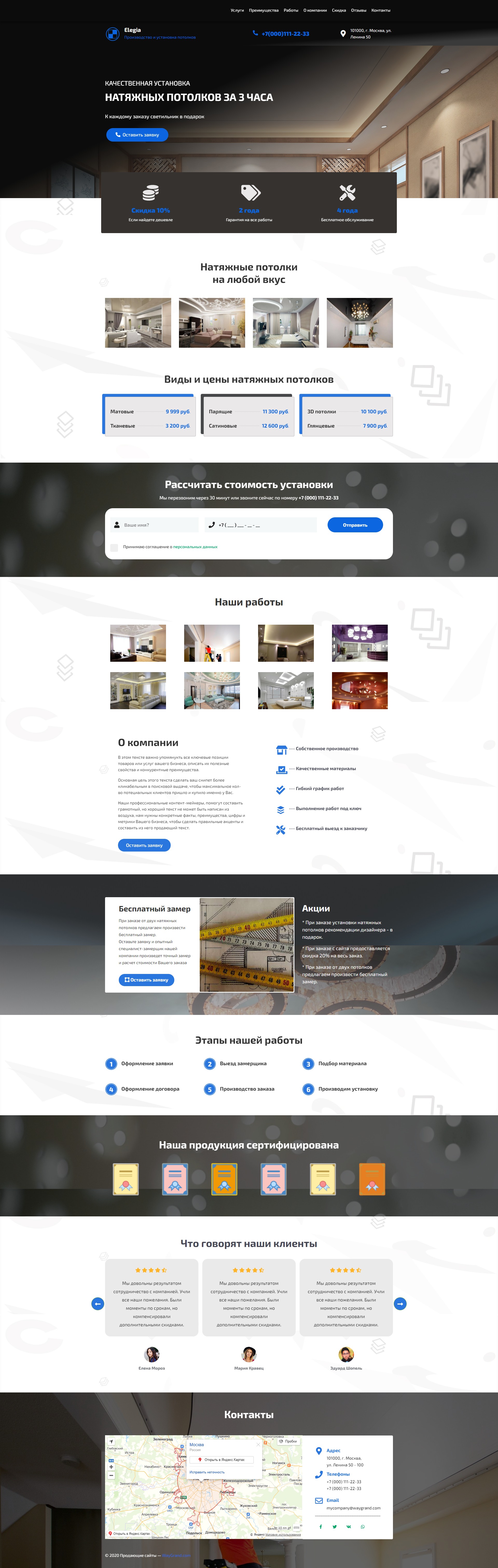 Закажите готовый продающий сайт лендинг #2029202 в Южно-Сахалинске за 1-3 дня «под ключ»: свёрстан, отрисован и готов к рекламе. Тематика шаблона «Натяжные потолки».