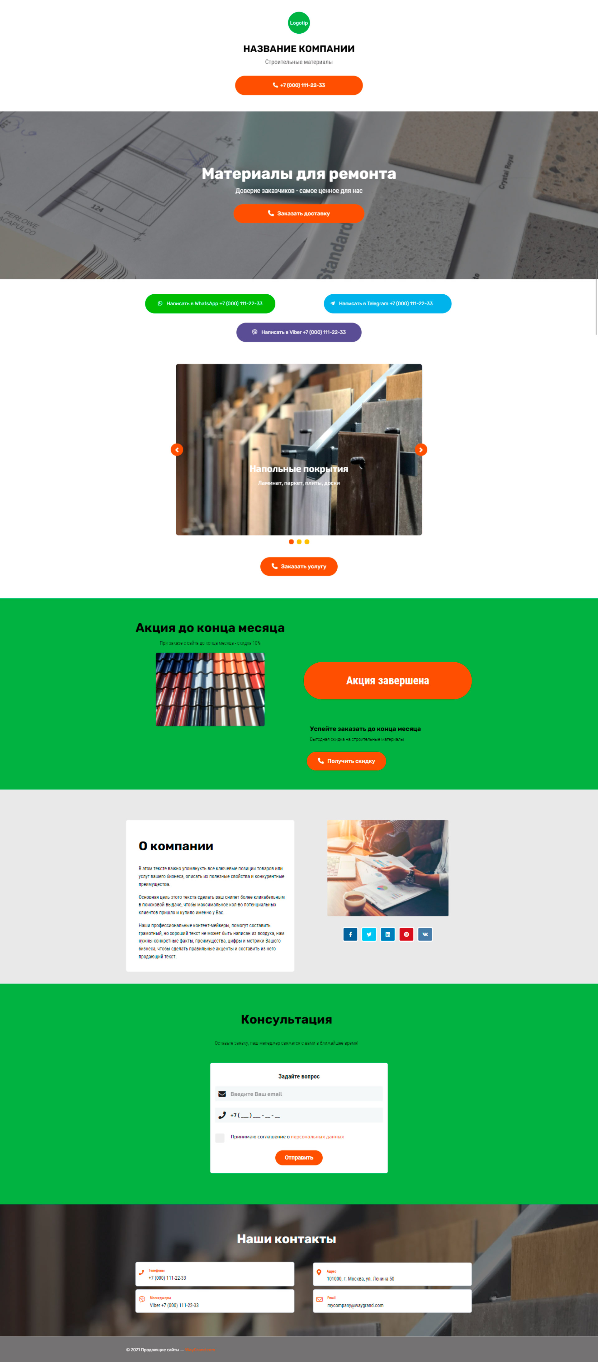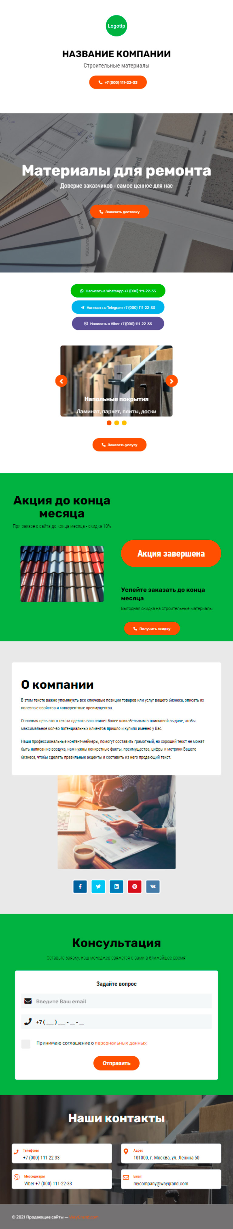 Закажите готовый продающий сайт визитка #2050101 в Южно-Сахалинске за 5-7 дня «под ключ»: свёрстан, отрисован и готов к рекламе. Тематика шаблона «Строительные материалы».