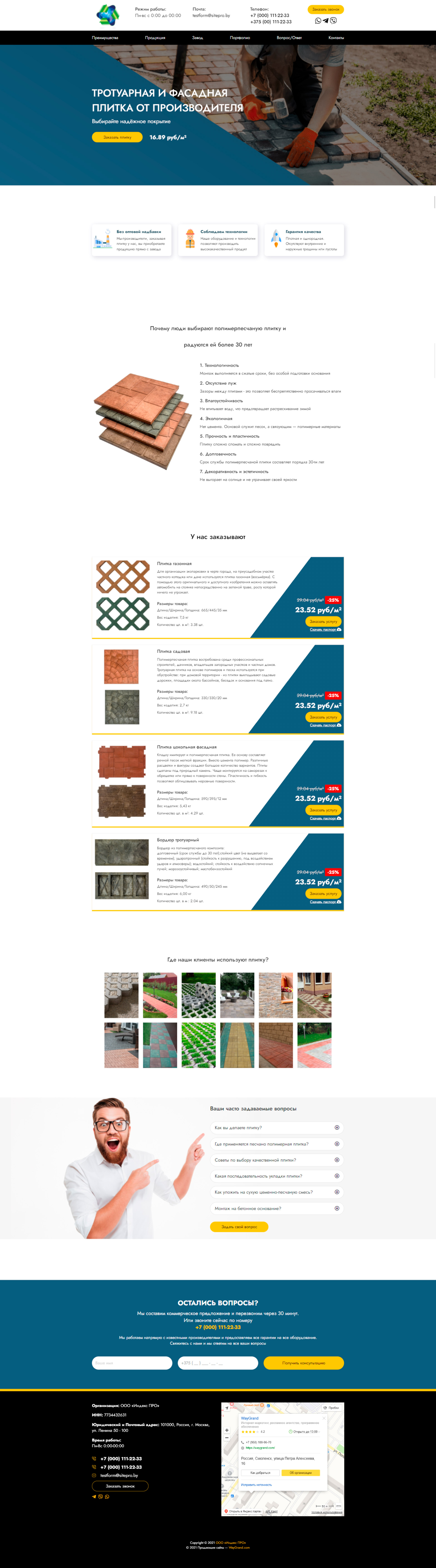 Закажите готовый продающий сайт лендинг #2055202 в Южно-Сахалинске за 1-3 дня «под ключ»: свёрстан, отрисован и готов к рекламе. Тематика шаблона «Тротуарная плитка».