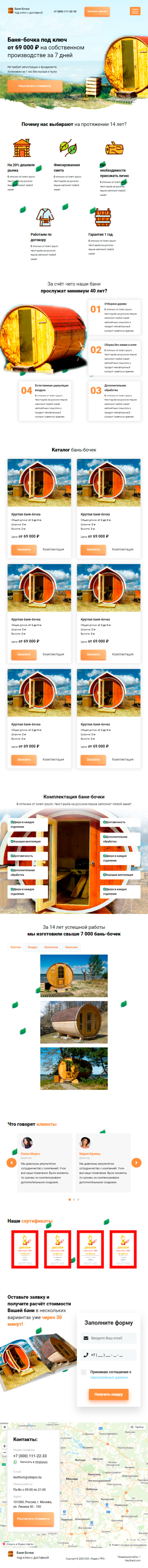 Закажите готовый продающий сайт лендинг #2172204 в Южно-Сахалинске за 1-3 дня «под ключ»: свёрстан, отрисован и готов к рекламе. Тематика шаблона «Баня-бочки».