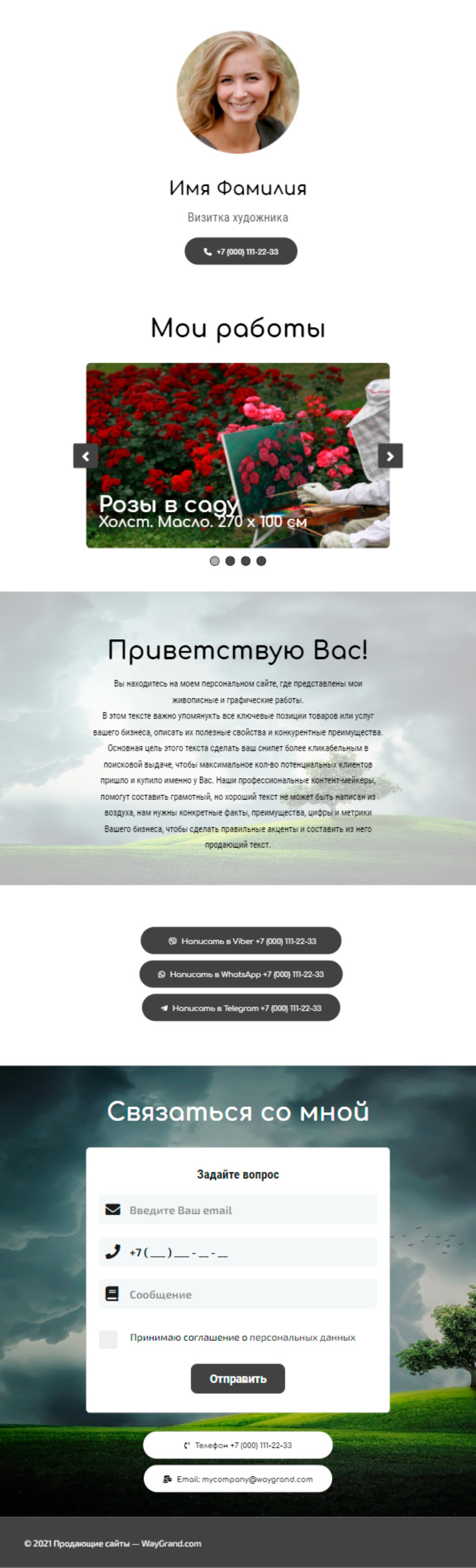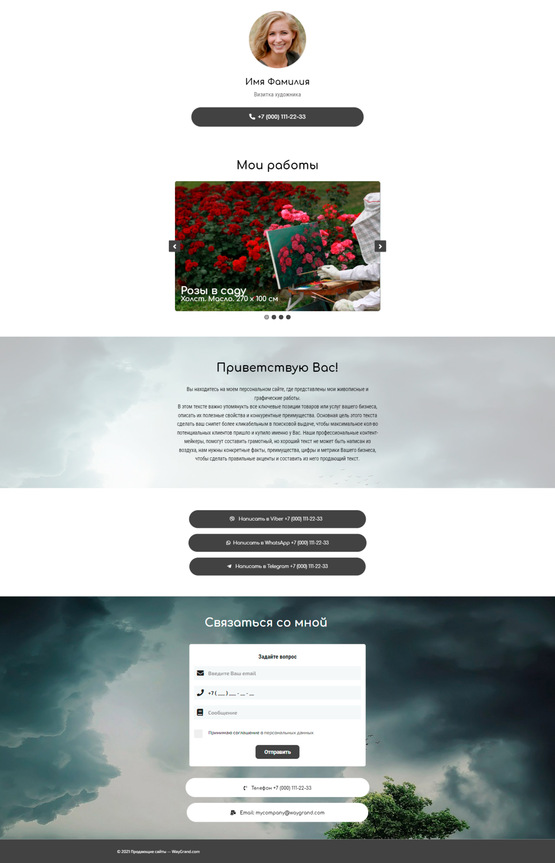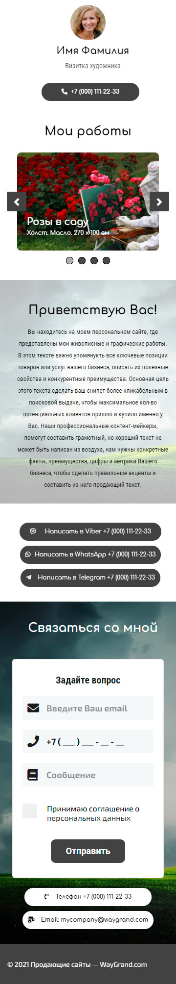 Закажите готовый продающий сайт визитка #0826101 в Южно-Сахалинске за 5-7 дня «под ключ»: свёрстан, отрисован и готов к рекламе. Тематика шаблона «Визитка художника».