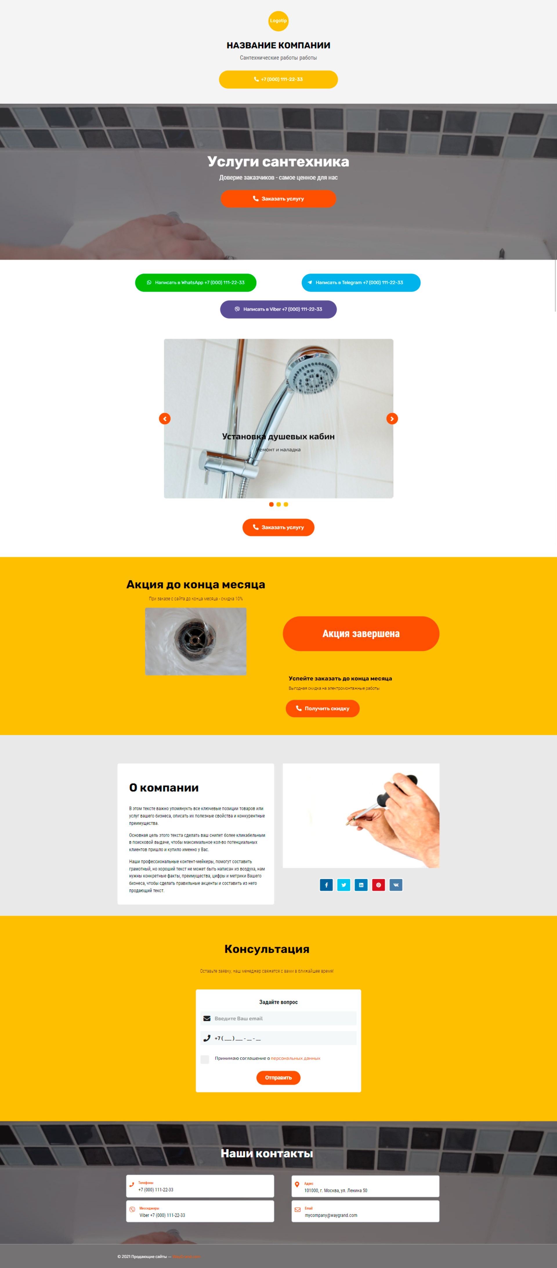 Закажите готовый продающий сайт визитка #2154101 в Южно-Сахалинске за 5-7 дня «под ключ»: свёрстан, отрисован и готов к рекламе. Тематика шаблона «Сантехнические работы».