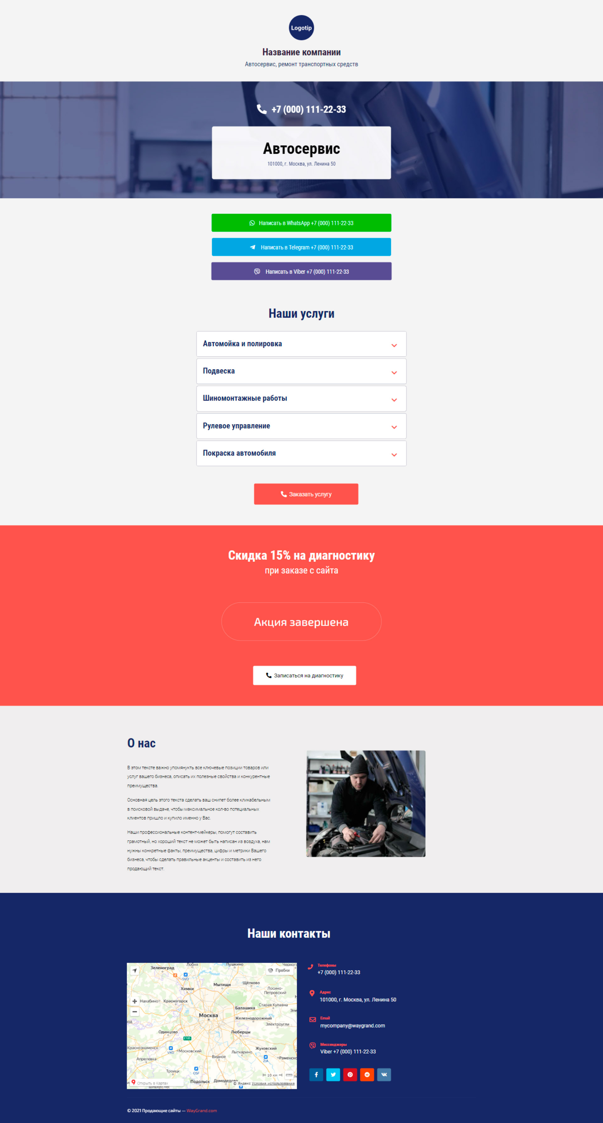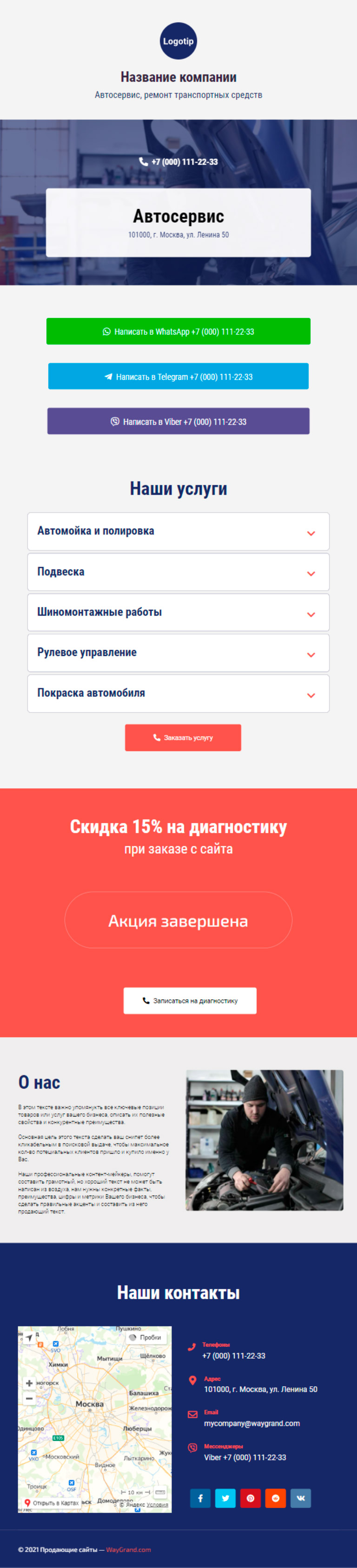 Закажите готовый продающий сайт визитка #0210101 в Южно-Сахалинске за 5-7 дня «под ключ»: свёрстан, отрисован и готов к рекламе. Тематика шаблона «Автосервис, ремонт транспортных средств».