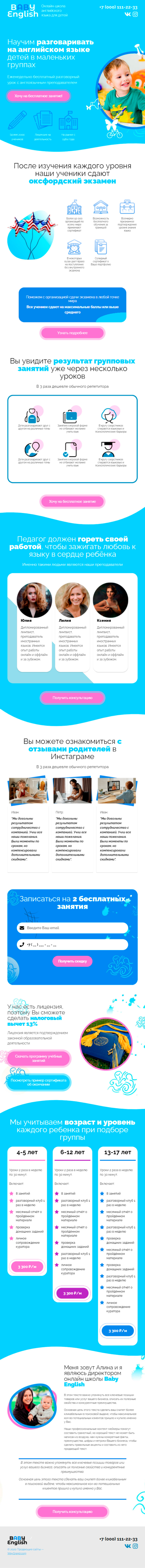 Закажите готовый продающий сайт лендинг #3172201 в Южно-Сахалинске за 1-3 дня «под ключ»: свёрстан, отрисован и готов к рекламе. Тематика шаблона «Английский для детей».