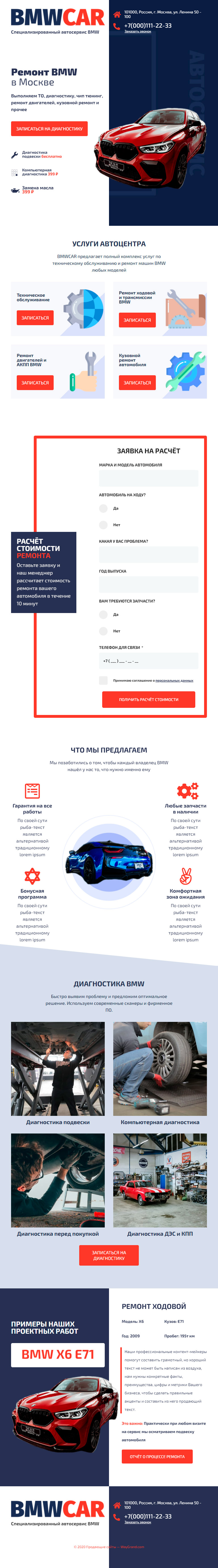 Закажите готовый продающий сайт лендинг #0210202 в Южно-Сахалинске за 1-3 дня «под ключ» по выгодным ценам на WayGrand: свёрстан, отрисован и готов к рекламе. Тематика шаблона «Ремонт BMW».