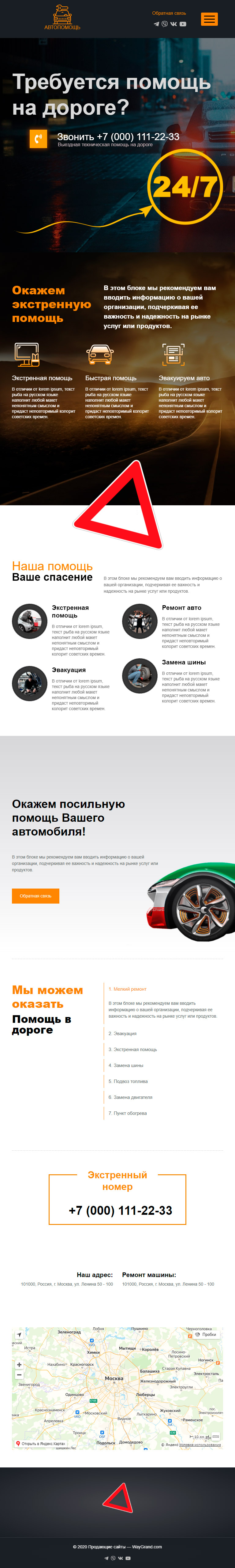 Готовый продающий сайт лендинг #0218201 в Южно-Сахалинске за 1-3 дня «под ключ» по доступным ценам на Waygrand: свёрстан, отрисован и готов к рекламе. Тематика шаблона «Выездная техническая помощь».