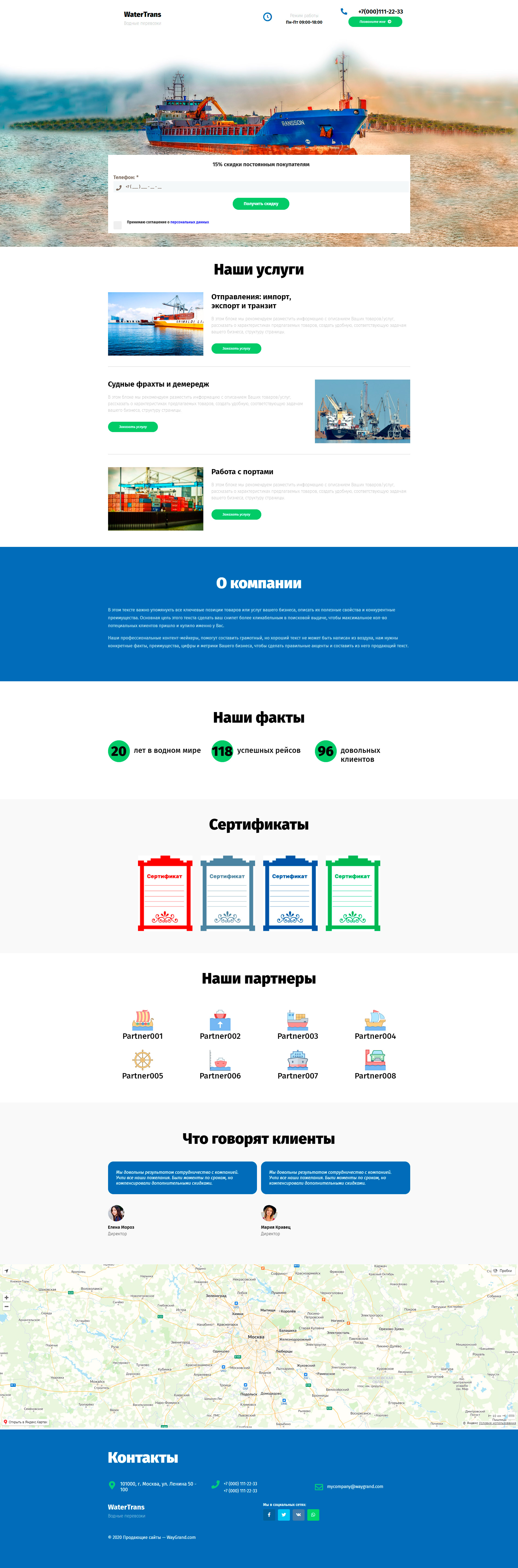 Закажите готовый продающий сайт лендинг #1908201 в Южно-Сахалинске за 1-3 дня «под ключ»: свёрстан, отрисован и готов к рекламе. Тематика шаблона «Морские перевозки».