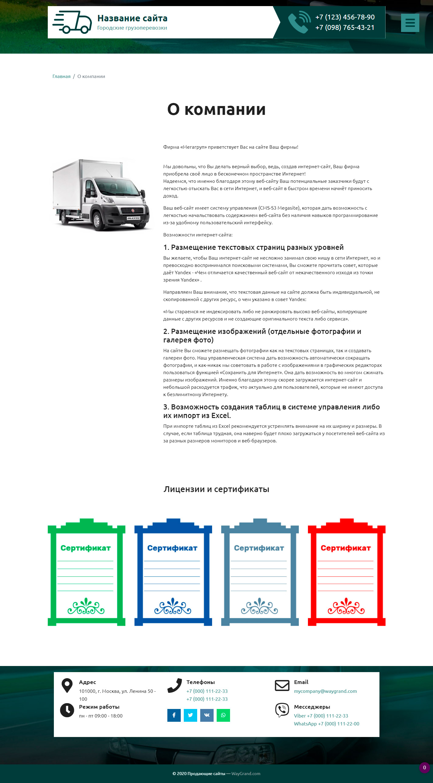 Закажите готовый продающий сайт визитка #2515302 в Южно-Сахалинске за 5-7 дня «под ключ» по доступным ценам на WayGrand: свёрстан, отрисован и готов к рекламе. Тематика шаблона «Городские грузоперевозки».