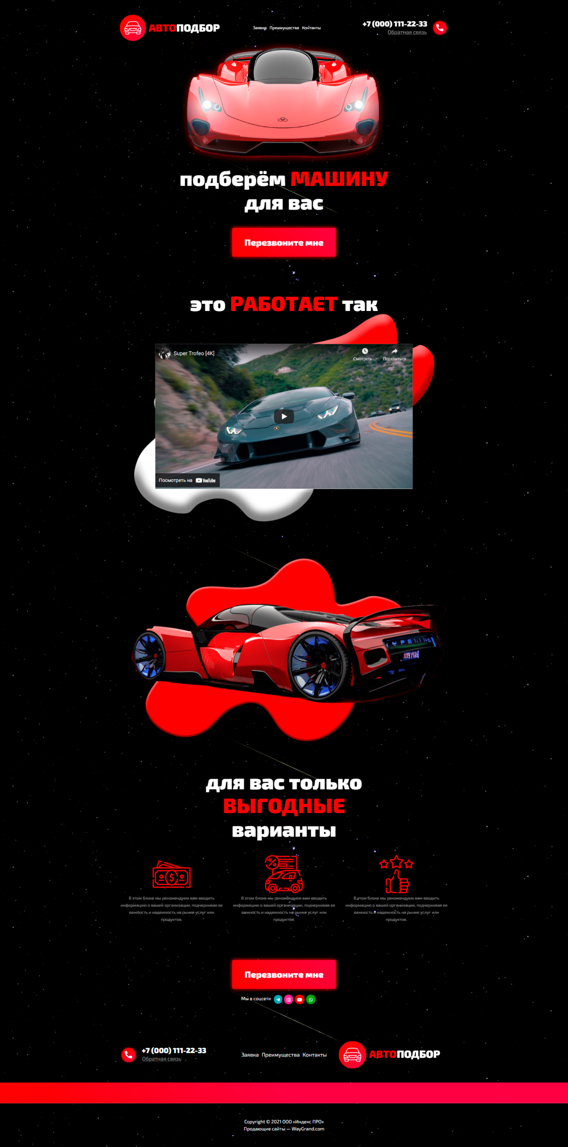 Закажите готовый продающий сайт лендинг #3275201 в Южно-Сахалинске за 1-3 дня «под ключ»: свёрстан, отрисован и готов к рекламе. Тематика шаблона «Автоподбор».