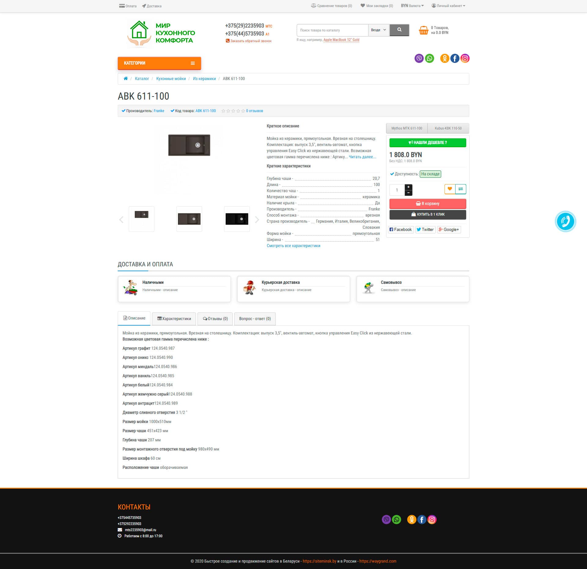 Сделали готовый сайт по тематике сантехника и аксессуары для кухни за 5 дней. Основная цель клиента: упрощение процесса продаж, упрощение процесса обратной связи. Сайт должен решать основную задачу: увеличение дохода компании за счет интернет-продаж, сокращение расходов на другие виды рекламы. По стоимости, клиенту данный заказ обошелся в 590 BYN.