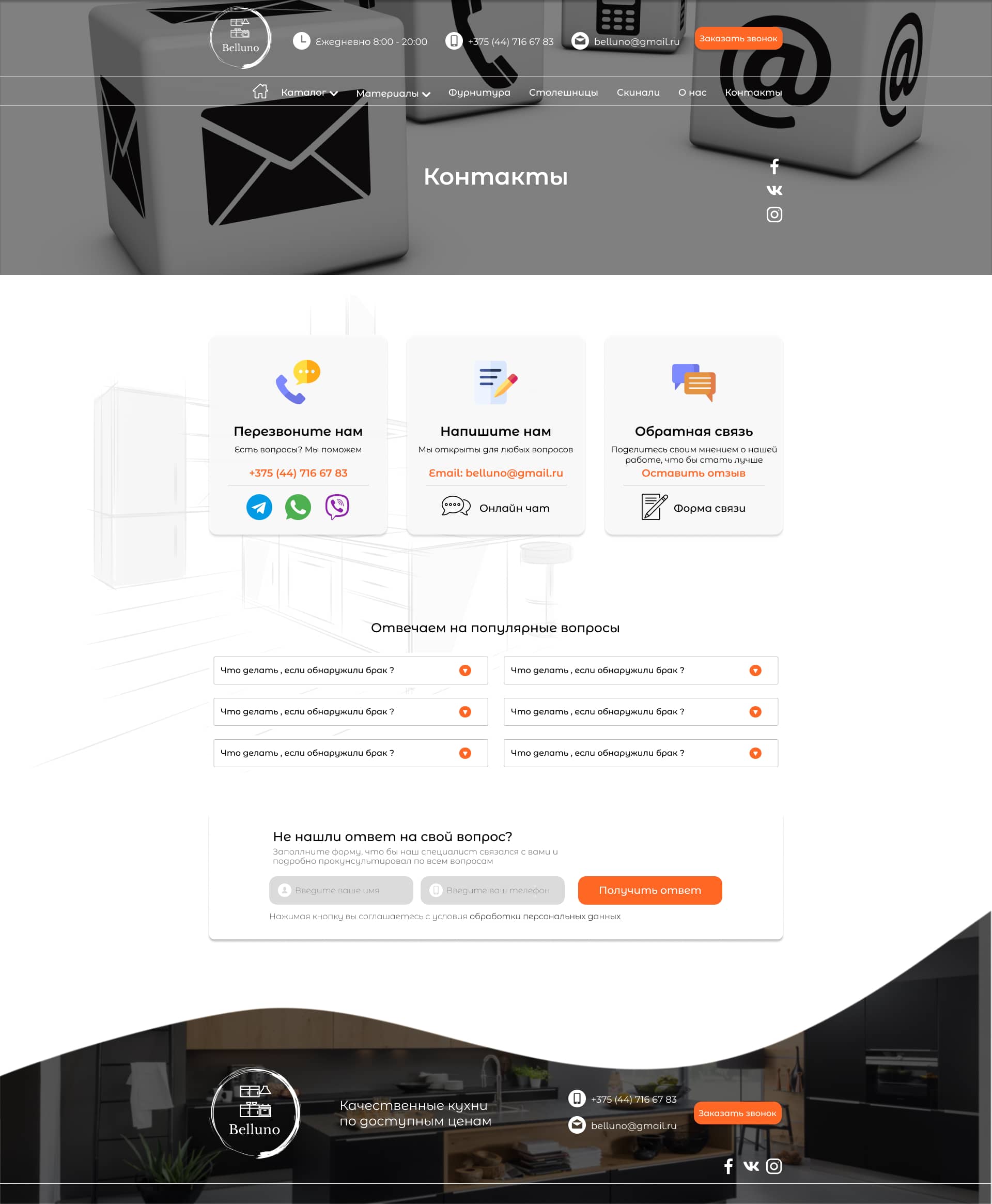 Закажите готовый продающий сайт визитка #282 в Южно-Сахалинске за 5-7 дня «под ключ»: свёрстан, отрисован и готов к рекламе. Тематика шаблона «Кухни».