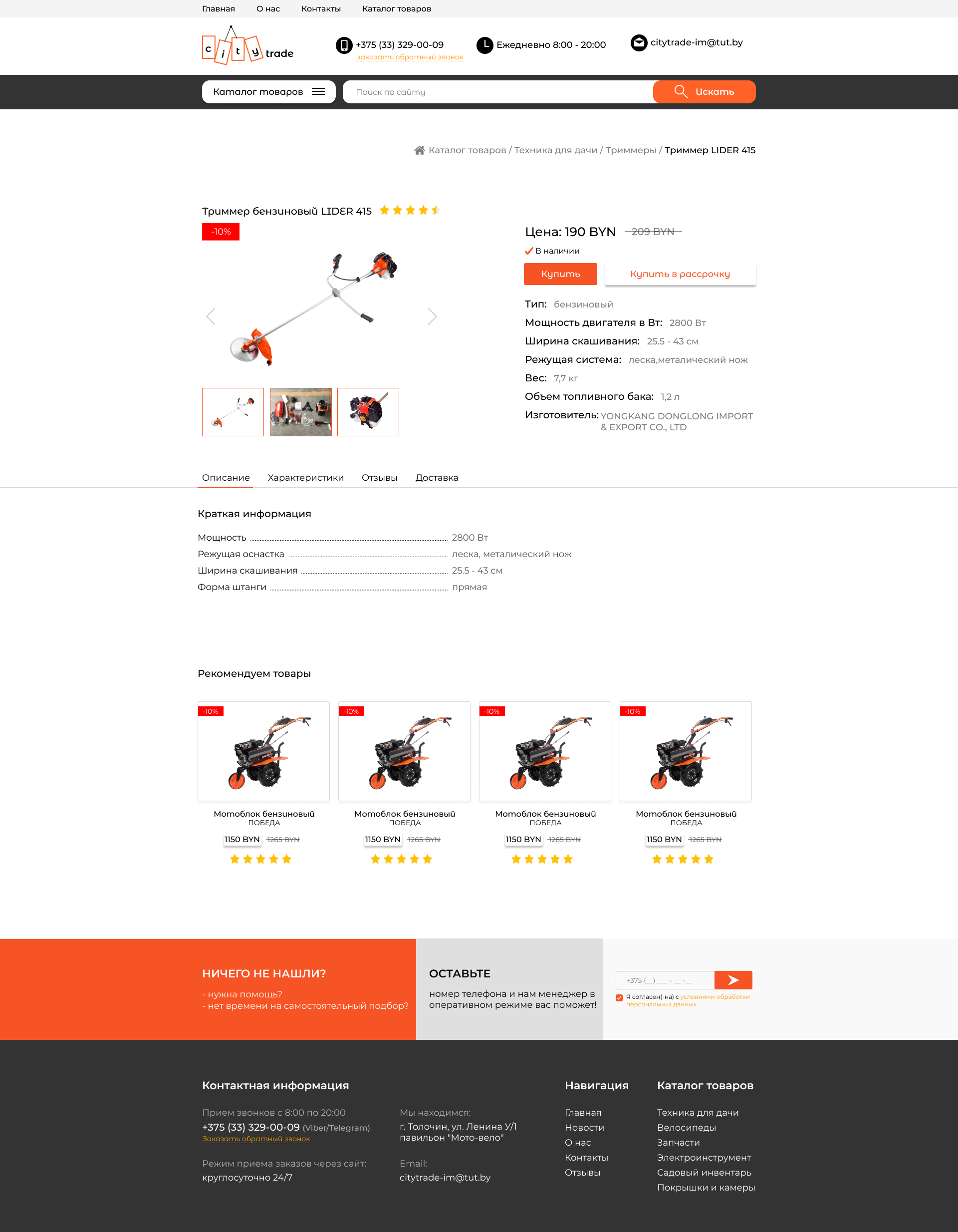 Закажите готовый продающий сайт визитка #281 в Южно-Сахалинске за 5-7 дня «под ключ»: свёрстан, отрисован и готов к рекламе. Тематика шаблона «Розничная продажа садовой техники, велосипедов».