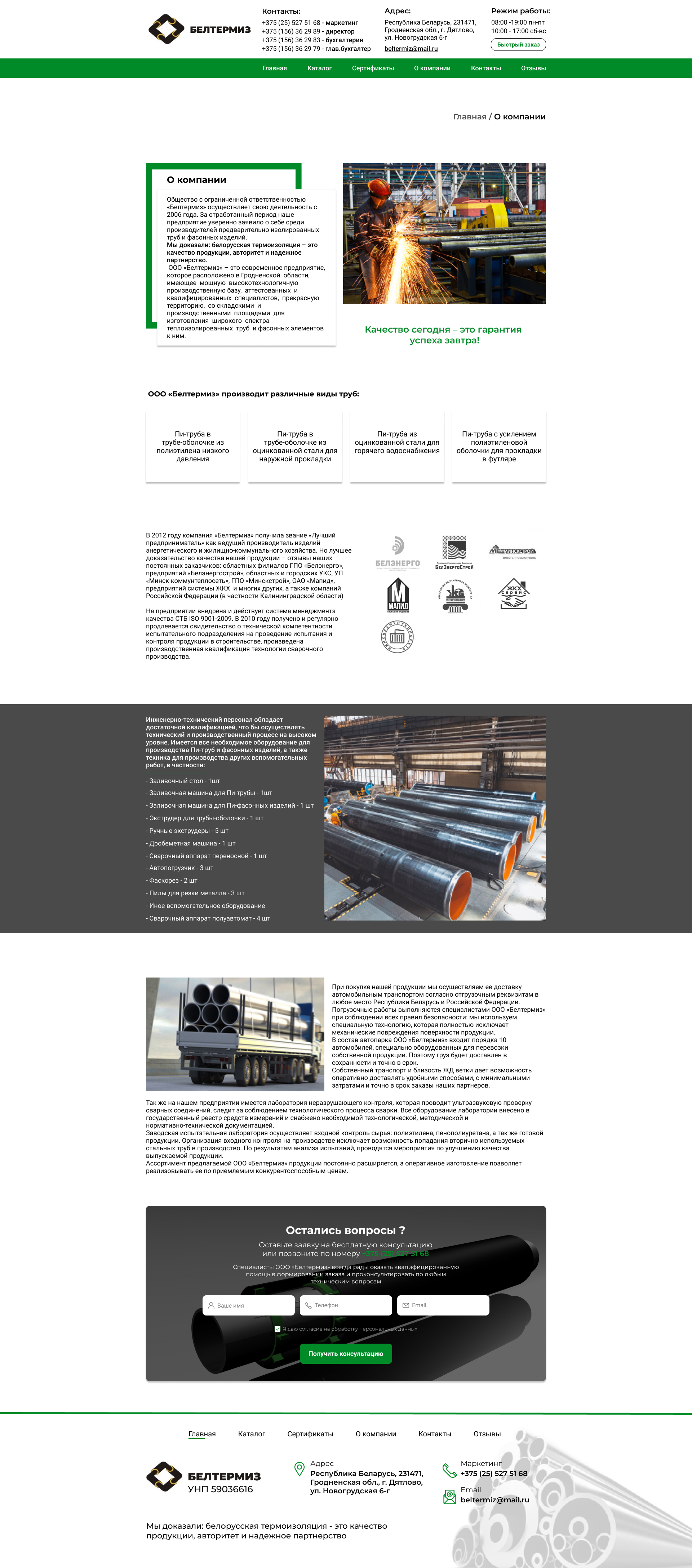 Закажите готовый продающий сайт визитка #141 в Южно-Сахалинске за 5-7 дня «под ключ»: свёрстан, отрисован и готов к рекламе. Тематика шаблона «Производство ПИ-труб».