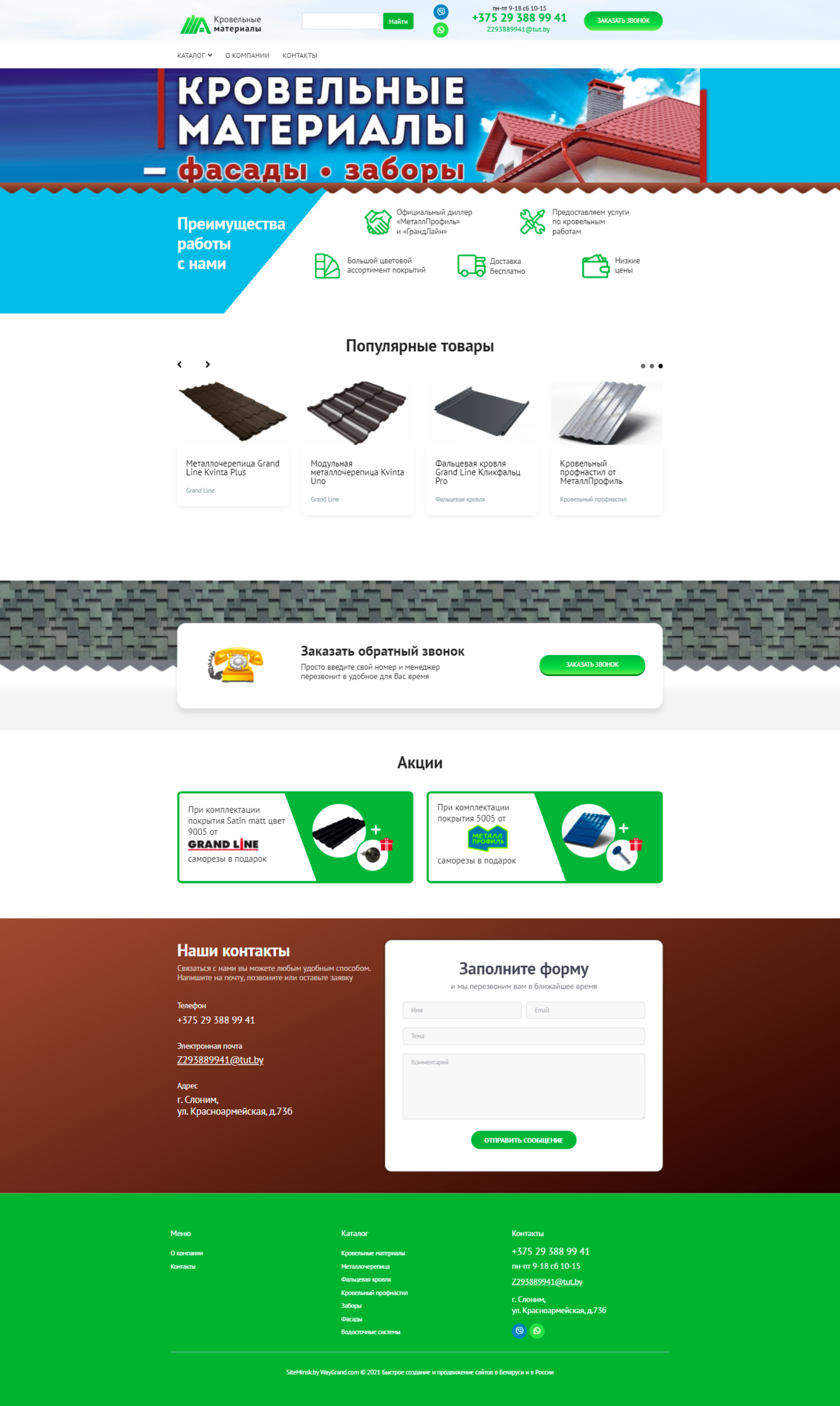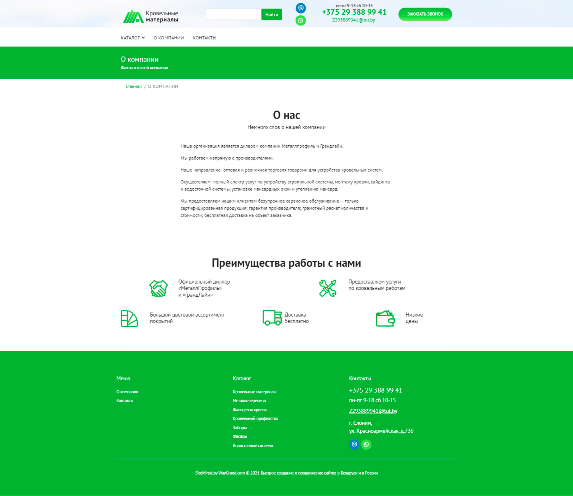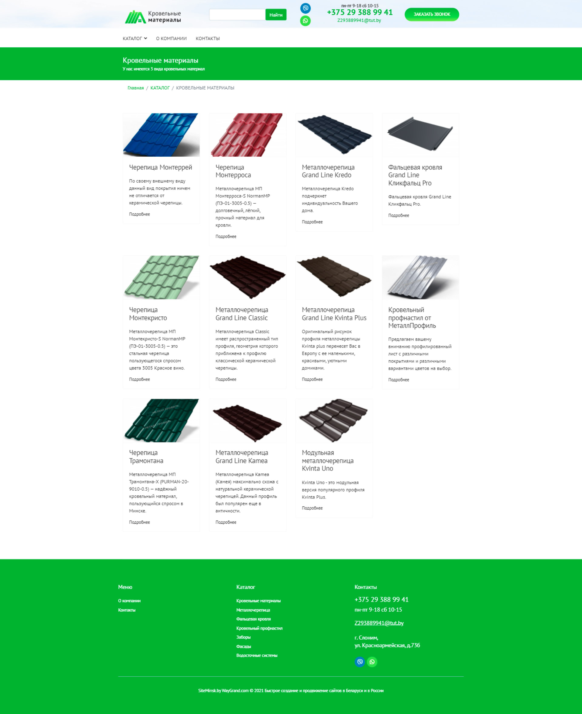 Закажите готовый продающий сайт визитка #324 в Южно-Сахалинске «под ключ» на waygrand по выгодной цене: свёрстан, отрисован и готов к рекламе. Тематика шаблона «Кровельные материалы».