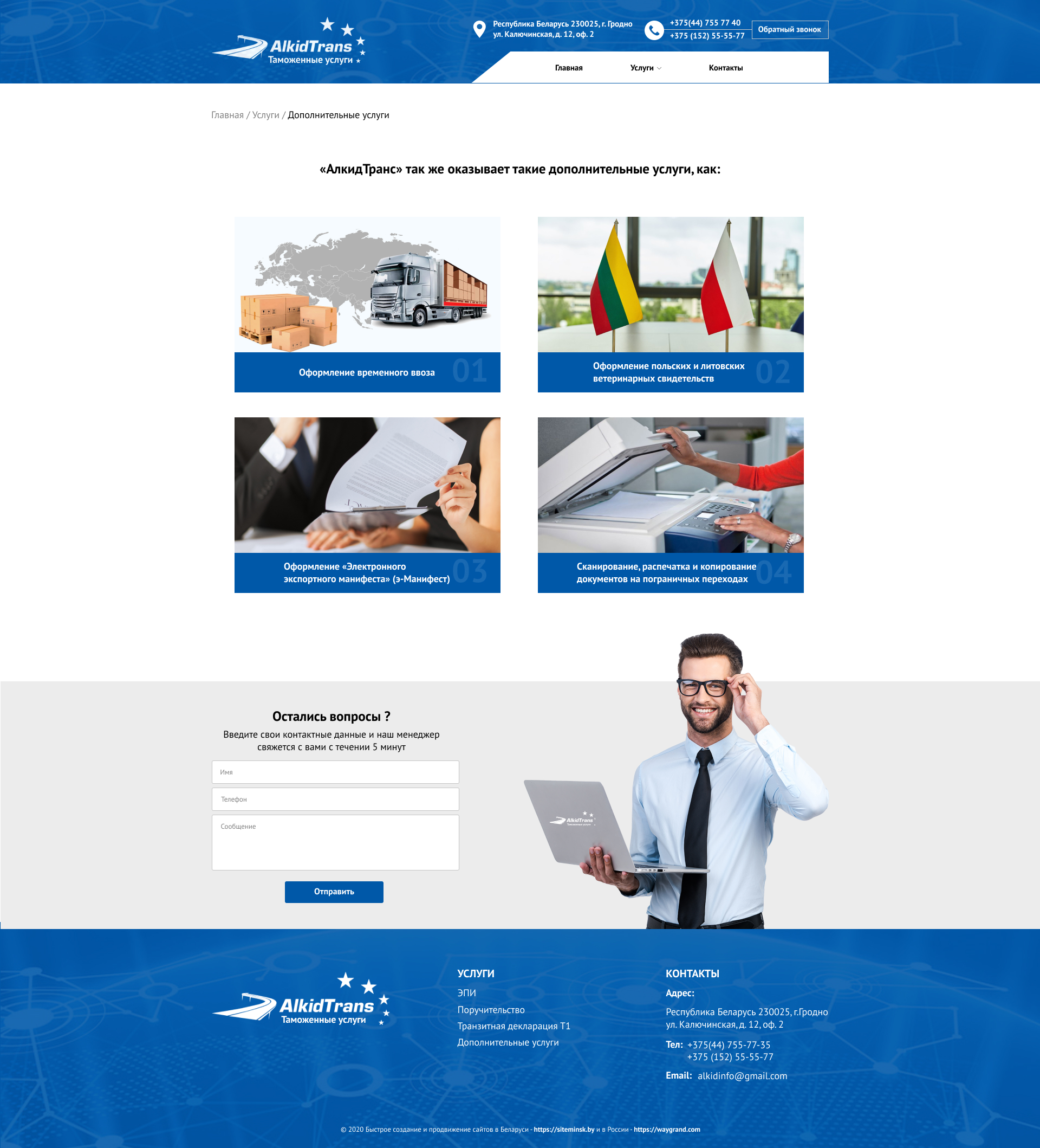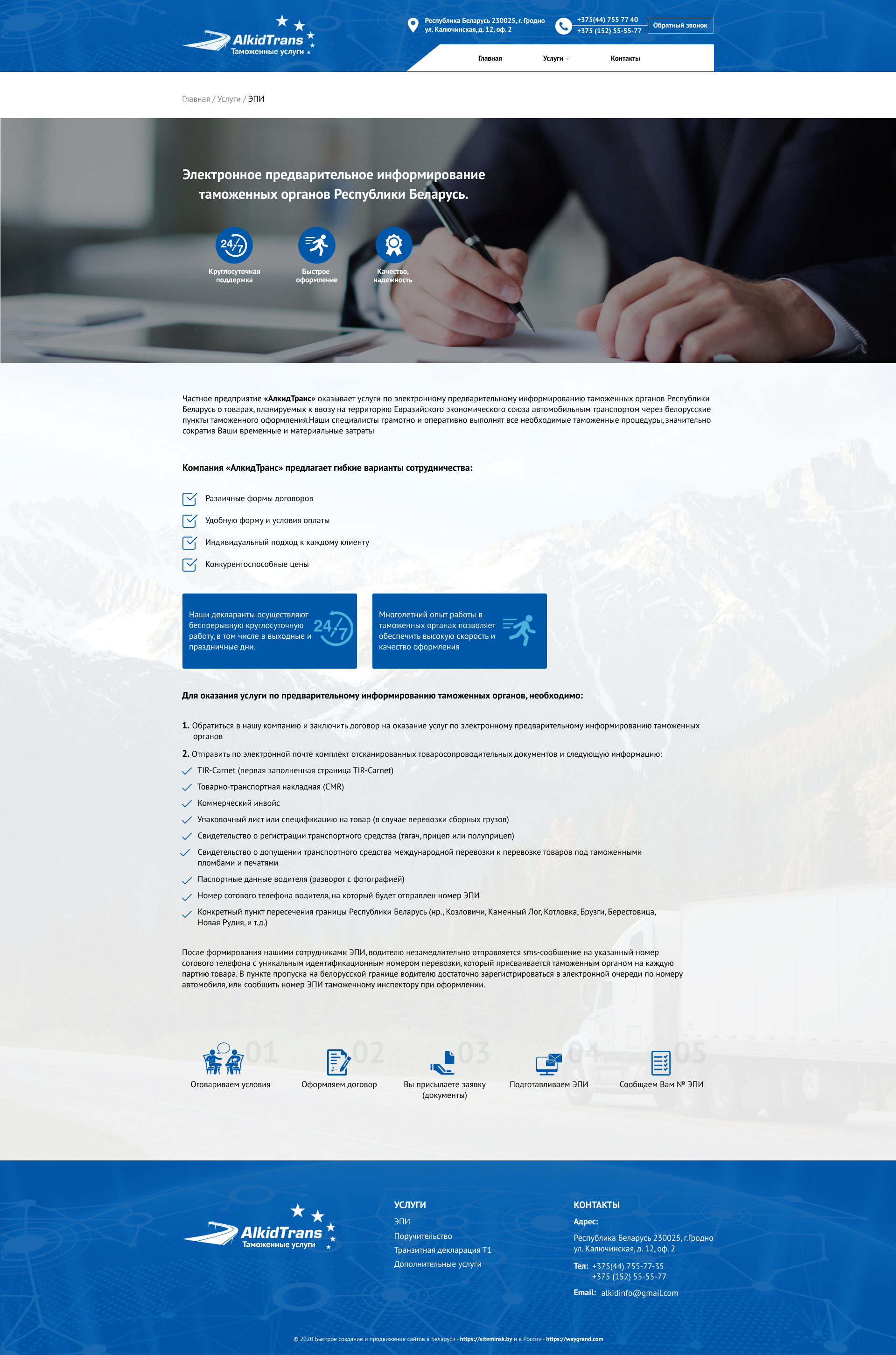 Закажите готовый продающий сайт визитка #234 в Южно-Сахалинске за 5-7 дня «под ключ»: свёрстан, отрисован и готов к рекламе. Тематика шаблона «Таможенные услуги».
