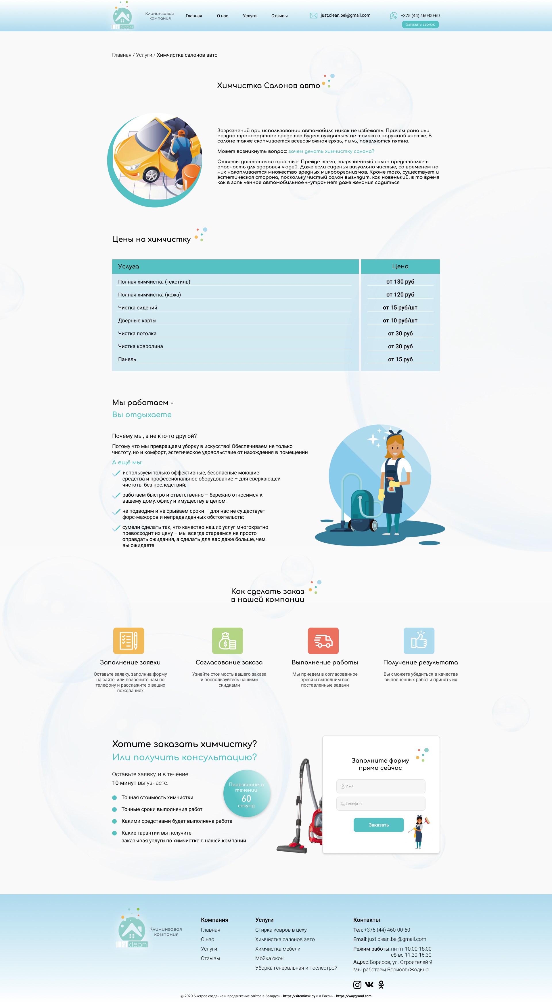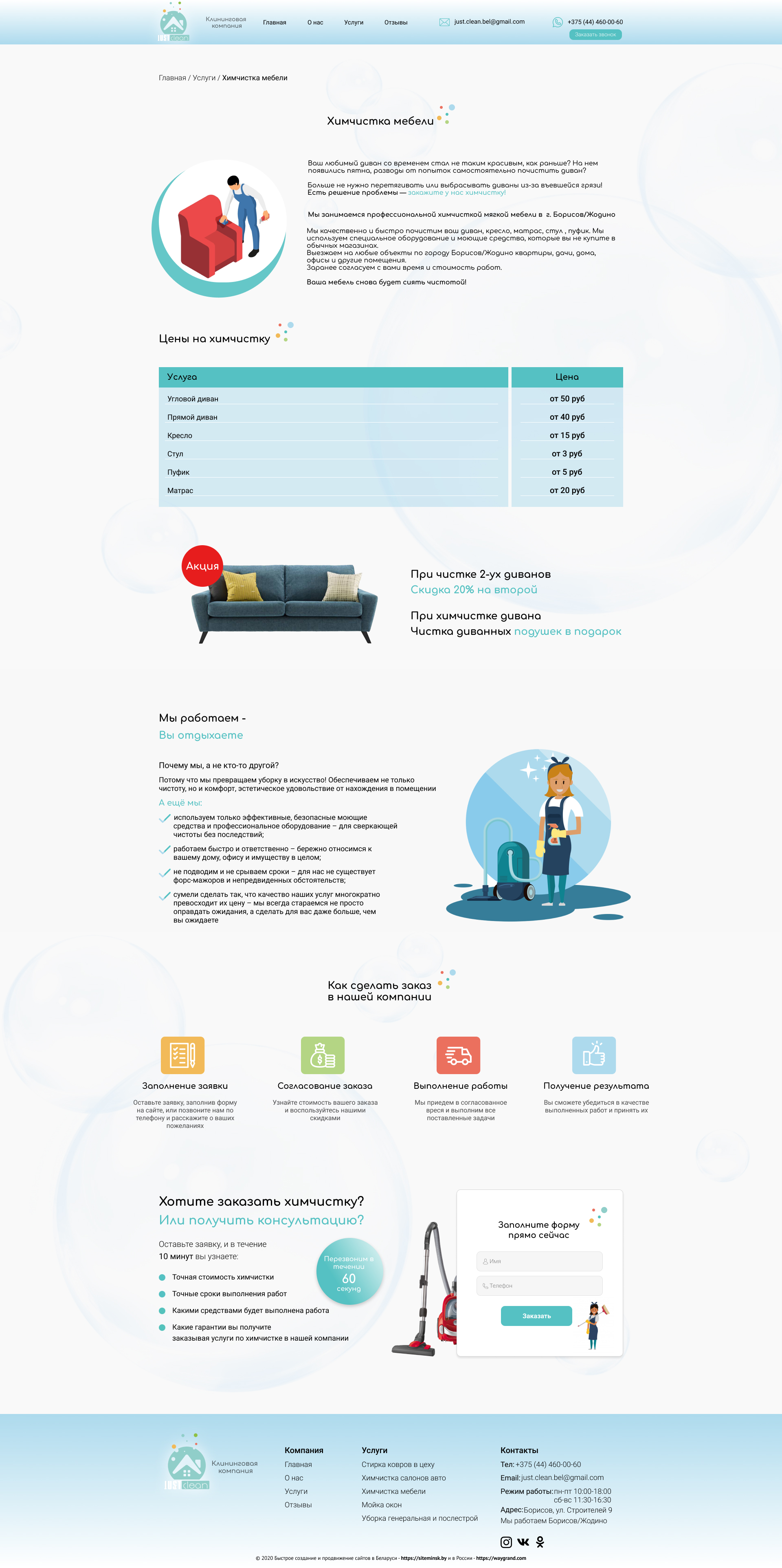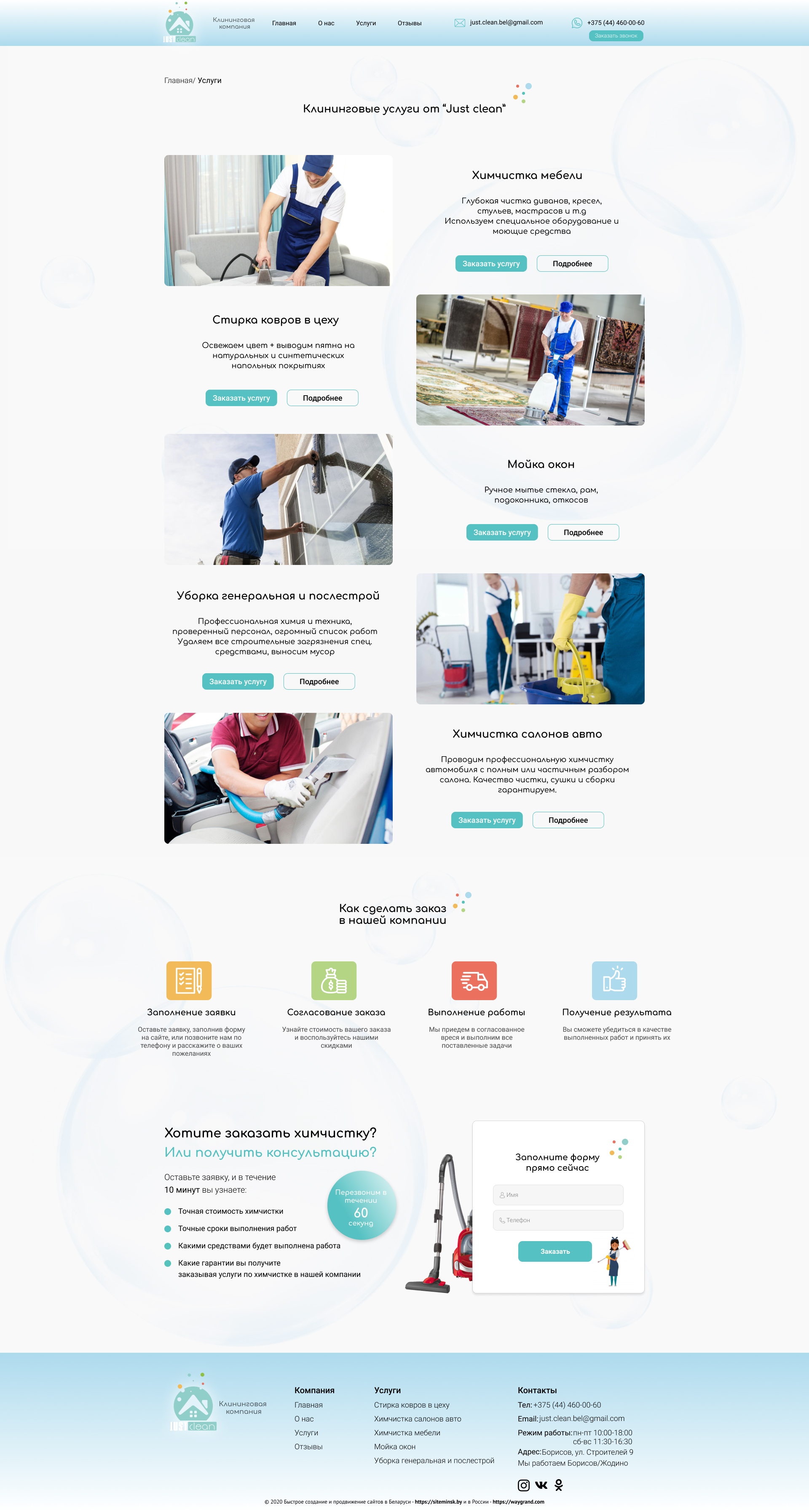 Обратился в данную компанию за разработкой сайта для моей организации. Мы занимаемся оказанием клининговых услуг. Сайт оказался легким, информативным, лаконичным. Легок в управлении. Остался всем доволен. Выражаю огромную благодарность в помощи создания сайта.